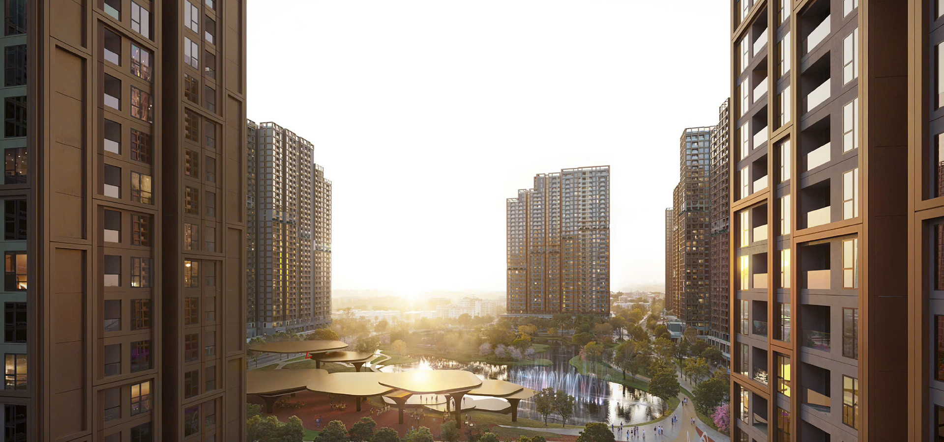 - 07. Compound từng cụm toà: Công viên trung tâm phân khu thì vẫn có thể người ngoài vào được để tăng sinh khí.